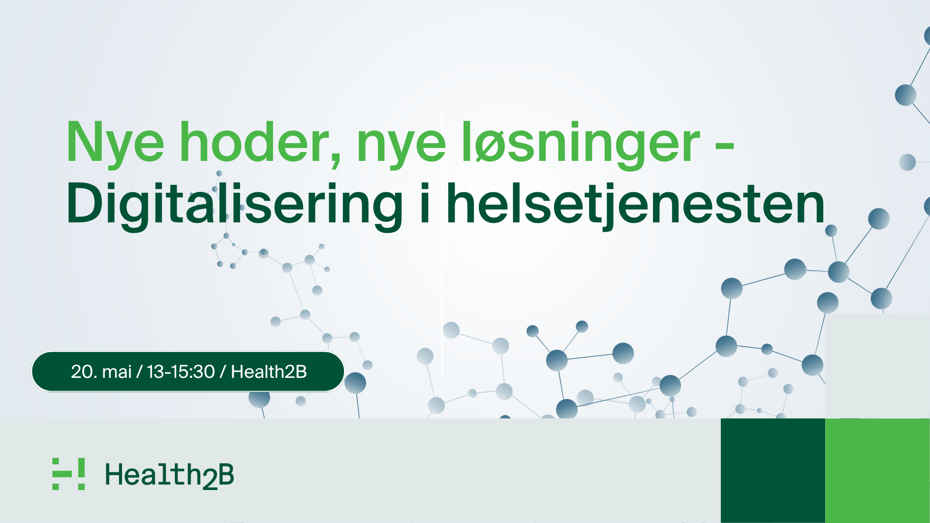 Velkommen til et inspirerende Health2B-seminar, Nye hoder, nye løsninger - digitalisering i helsetjenesten, onsdag 20. mai 2026!