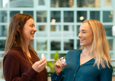 Cenli teamet er fornøyd med å endelig kunne lansere sitt kit for biofeedback. Her ved Jenny Nesje og Cathrine Ro Heuch. 📸Cenli